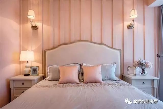如果比较怕黑的,可以学酒店,在床尾设置光线微弱的墙角灯,增加安全感。晚上睡觉时只需要开一盏小小的灯就够了。