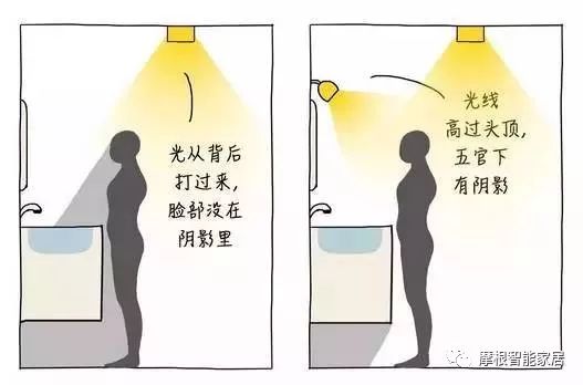 卫生间别看面积不大,里面的灯光可是大有名堂。卫生间的灯光设置不合理,在镜子前人脸会出现阴影,不利于化妆、刮胡子等脸部清洁活动。