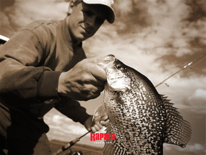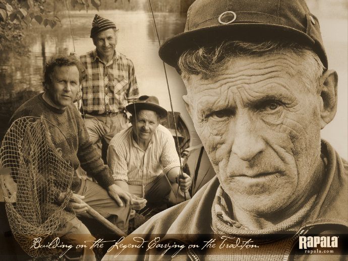 厂牌名Rapala其实上就是故事中主角的名字,然而究竟他的姓是什么,连他自己都不知道,生于1907年的他是一名私生子,五岁前,他只知道Lauri是别人对他称呼,至于后来的Rapala则是五岁那年一位来到他出生的小镇的传教士给他取的,这个字以芬兰话的来说是「泥泞」的意思(也许当年他被见到时,常是身上泥泞满身之故)。 Rapala可以算是位渔夫,早年的他十分穷苦,七个孩子和妻子Elma就生活在十三尺见方大小的木屋,他必须经年的在距离赫尔新基北方二小时车程的湖泊Vaaksy里辛苦垂钓以维持生计。他整日滑着木船,借着近百个钩着活饵的钩组等待鱼只上钩,有时候两天渔获可达六百磅的鳟鱼,有时候则一无所获。在苦等鱼上钩时,他很自然的花上无数小时的时间,观察属于水里世界生存的竞争定律。他发现在湖中一种叫鲦鱼(minnow)的小鱼常常成为掠夺性强的鱼如鳟鱼,梭鱼的食物。而这种掠食行为并非没有一定的行为模式,而是会挑上层小鱼群中特别的几只。原来,属于孱弱的鱼体,它们的游姿常和其它鱼不同,也因此成为被攻击的对象鱼。在长久仔细的观察下,Rapala居然可以预测一群鱼中究竟谁将是下一个倒霉鬼。