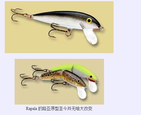 自从路亚这项发明以来,所有后续跟进的厂家还是脱离不了 Rapala 所设计的路亚原型,Rapala 的拟饵至今有一些特定的款式还是保留原有的设计 , 在材质上还是有多款坚持使用木质,在用过 Rapala 的拟饵时不妨想想前人发明的用心 , 在多年后的今日~我们才有此项产物享受钓鱼的乐趣。。。